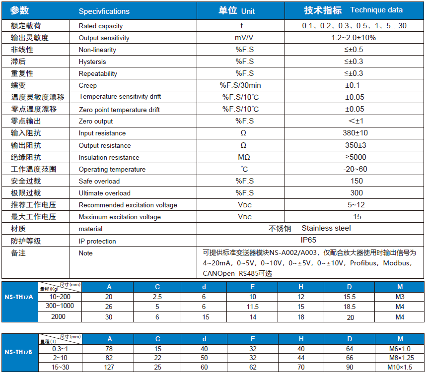 NS-TH4 系列稱重傳感器采用懸臂剪切結構;