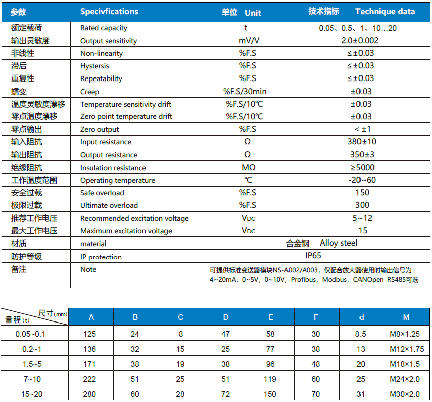 NS-TH5 系列 稱重傳感器