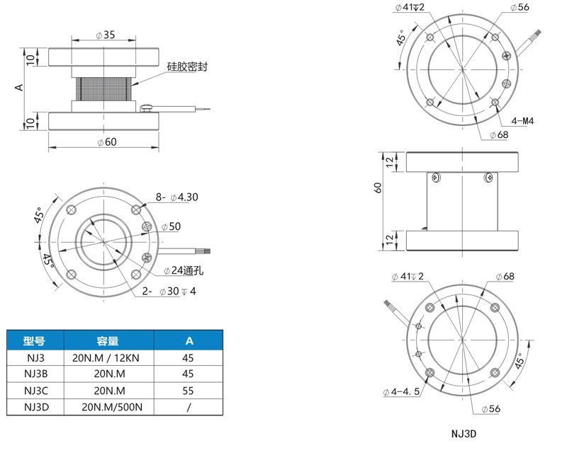 輸出:1mv/V、0~±5/10V、4~20mA可選